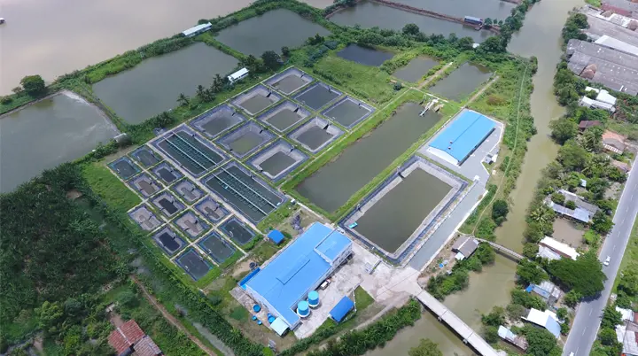Our aquaculture R&D center is located in tropical Vietnam next to the Mekong river. This is ideal because we can do the research trials under near-market conditions. For example use water with similar quality parameters resembling the markets where we are present, in Vietnam, South East Asia and other warm water aquaculture producing countries. Water is pumped into sedimentation ponds to get rid of suspended solids, before it is pumped into a reservoir tank. From here gravity will take care of supplying water to the rest of the facility which consists of an indoor section and an outdoor section.
