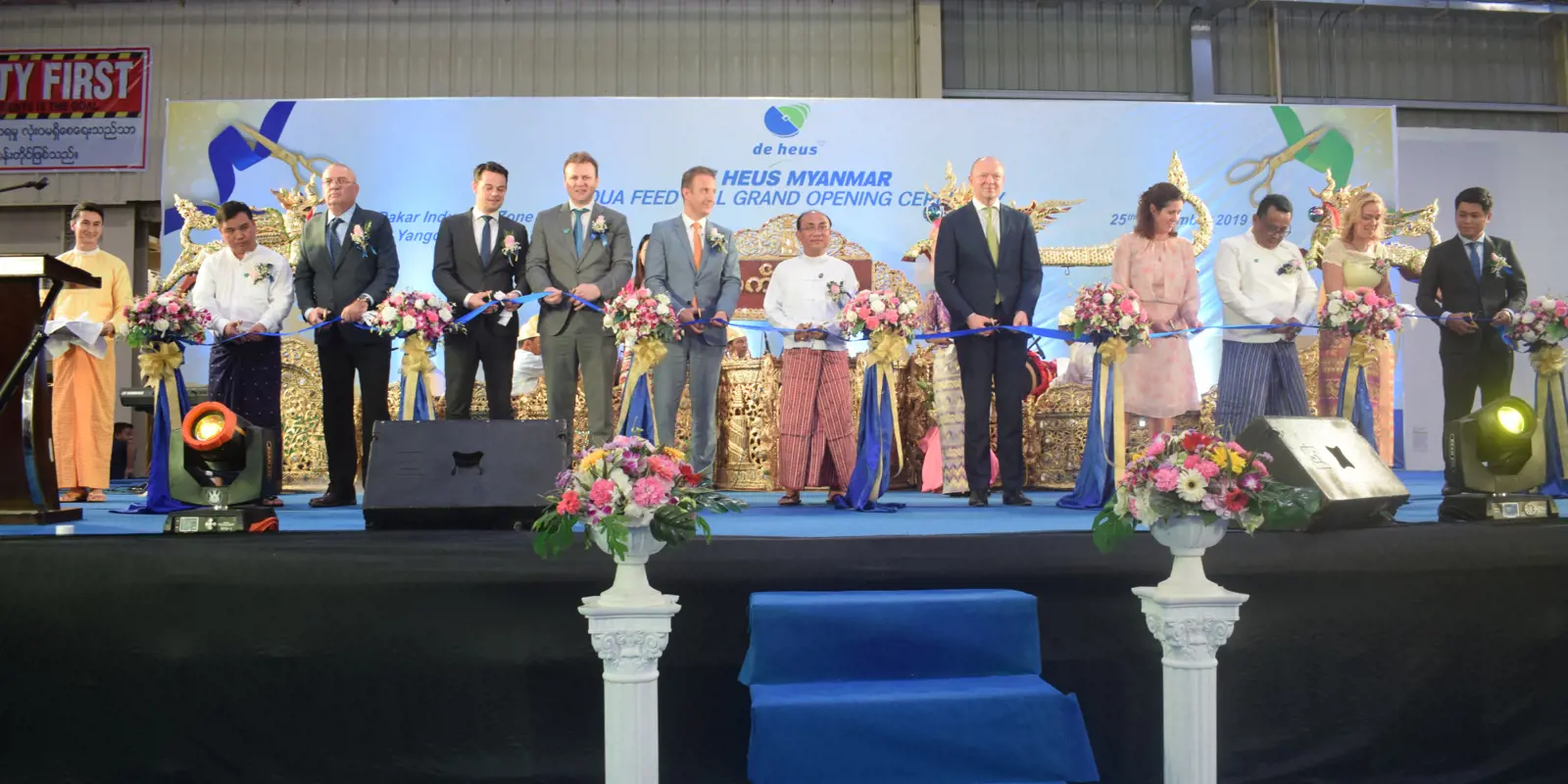 No dia 25 de Novembro de 2019, a De Heus Mianmar celebrou a abertura de uma fábrica de rações dedicada à aquacultura nesse país asiático. Este moderno local de produção permitirá que os produtores de aquacultura tenham acesso às rações de alta qualidade necessárias ao desenvolvimento das suas explorações a preços acessíveis.