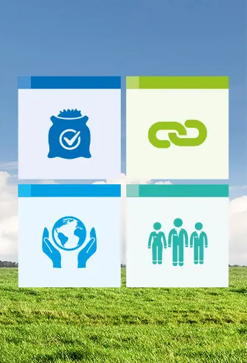 O Programa Responsible Feeding da De Heus assenta em quatro pilares interligados. Cada pilar centra-se em tópicos-chave que contribuem para um sistema alimentar resiliente e sustentável. Estes pilares abordam os desafios mais urgentes da nutrição animal e da produção de alimentos, reforçando o nosso objetivo de "Nutrir as Gerações Futuras".